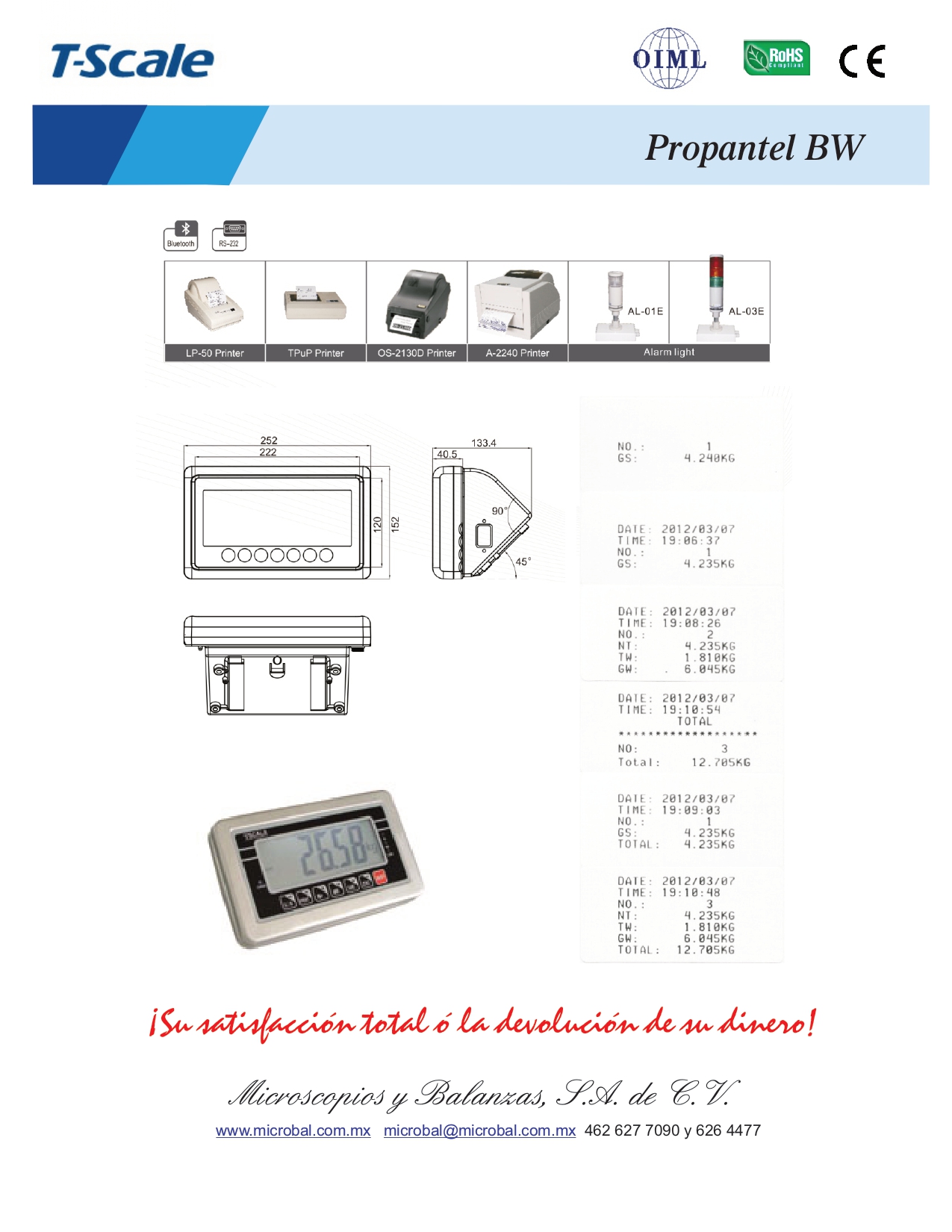 •Configuración amigable •Funciones de acumulación •Chequeo de peso •Diferentes unidades de peso •Relevador para control de máquinas. •Opcional RS232 •Opcional salida analógica 0-10V/4-20mA •Opcional salida cotrol de peso (Hi/Low/Beep) •Opcional bluetooth